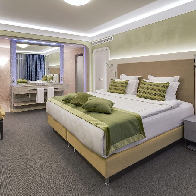 В отеле всего 1 номер категории Гранд Люкс. По желанию объединяется с двухкомнатным Люксом, соединенным дверью. Идеальный вариант для проживания парам и семьям.